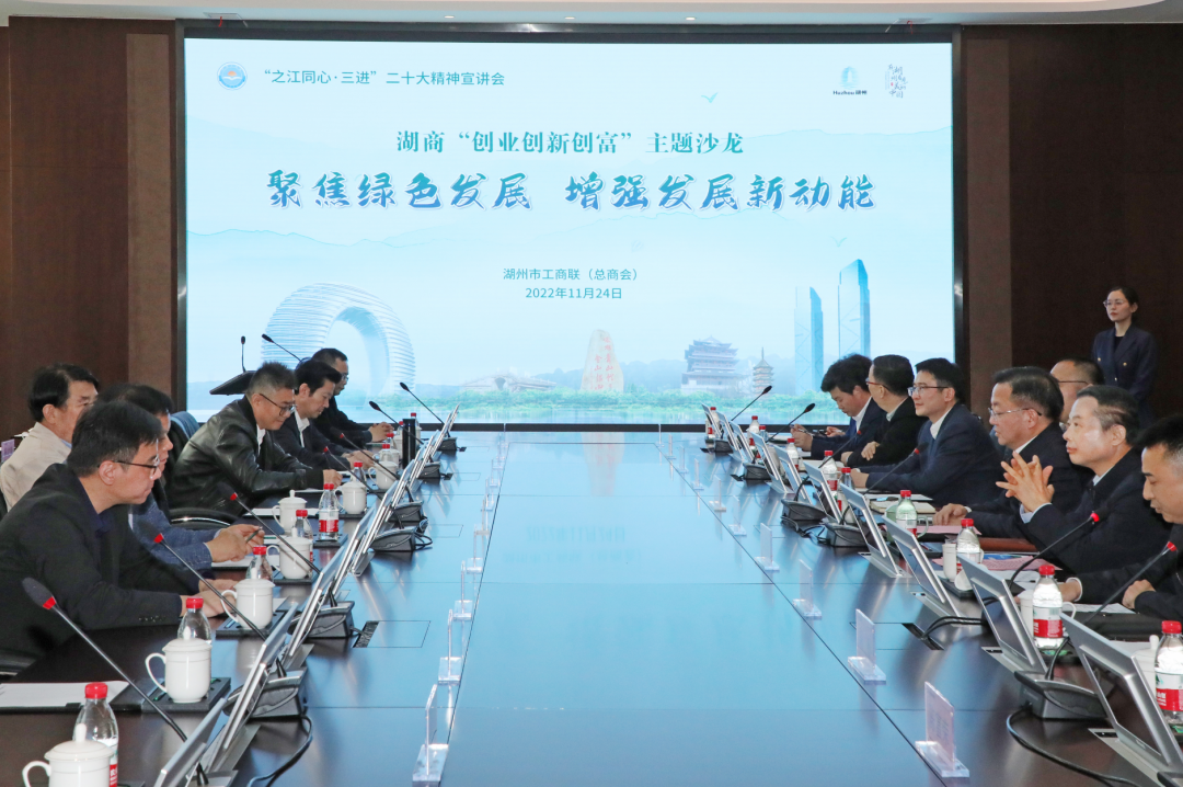 湖州市委常委、统战部部长姜景峰在讲话中指出,回首昨天,历史上湖商铸就了富可敌国的财富神话,创立了开拓奋进的品牌,形成了特色的“湖商精神”,展示了勇立潮头、一往无前的奋进姿态;今天,湖商正在描绘浓墨重彩的壮丽画卷,民营经济主导的产业特色鲜明,重点企业不断涌现,一大批勇于创新的企业家茁壮成长;市委市政府把民营企业和民营企业家作为最宝贵的财富,未来仍将一如既往地提供优质营商环境,持续拉近沟通和服务距离,共创“在湖州看见美丽中国”的美好明天。